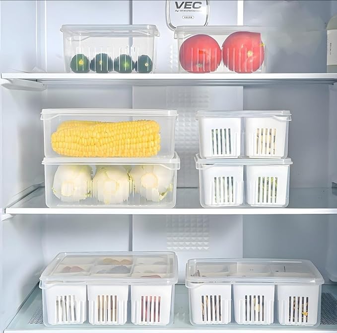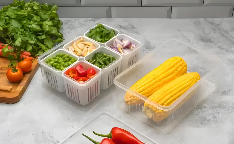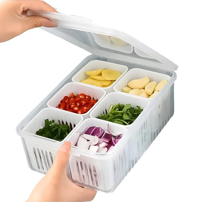 This product is a practical and efficient storage solution for kitchens, particularly beneficial for those who engage in meal prepping or seek better organization within their refrigerator. It features a multi-compartment design, typically with six individual grids, allowing for the organized separation of various prepped ingredients such as chopped vegetables, fruits, or other food items. Made from durable plastic, it is designed for repeated use and easy cleaning. The integrated strainer or slotted design in some compartments further aids in maintaining freshness by allowing for drainage, making it ideal for storing washed produce. Its compact and often stackable form factor helps maximize fridge space, contributing to a more tidy and functional kitchen environment and potentially reducing food waste.