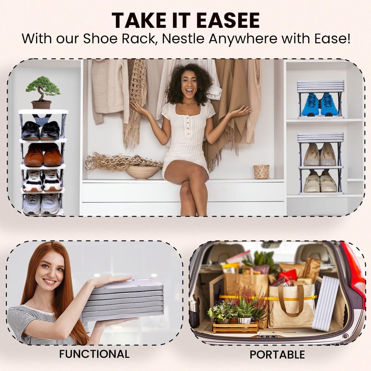 The Foldable 6-Layer Shoe Rack stands as the most comprehensive and robust offering in its series, meticulously engineered to provide an unparalleled storage solution for substantial shoe collections and diverse household items within any living space. Its defining characteristic is the innovative foldable design, which allows the unit to collapse into a remarkably flat and compact form, ensuring effortless storage when not in use or convenient portability during relocation. This feature makes it an ideal choice for urban apartments, seasonal organizational shifts, or anyone seeking to optimize their spatial efficiency. With an impressive six distinct tiers, this rack dramatically amplifies vertical storage capacity, effectively organizing a vast number of shoes – from various styles of footwear to seasonal boots and accessories – thereby transforming cluttered areas into orderly zones. Constructed from high-grade, durable materials, the rack is built to withstand consistent daily use, promising long-term stability and resilience. A key benefit is its user-friendly nature, featuring an intuitive, tool-free assembly and disassembly process that allows for quick setup or breakdown without any hassle. Beyond its primary function for shoes, the expanded six-tiered structure offers exceptional versatility, making it perfectly suited for organizing a wide array of items such as books, storage boxes, or personal belongings across different rooms. Its modern and streamlined aesthetic ensures it seamlessly integrates into any home decor, presenting an elegant yet exceptionally practical answer to extensive storage demands while maximizing convenience and spatial utility.