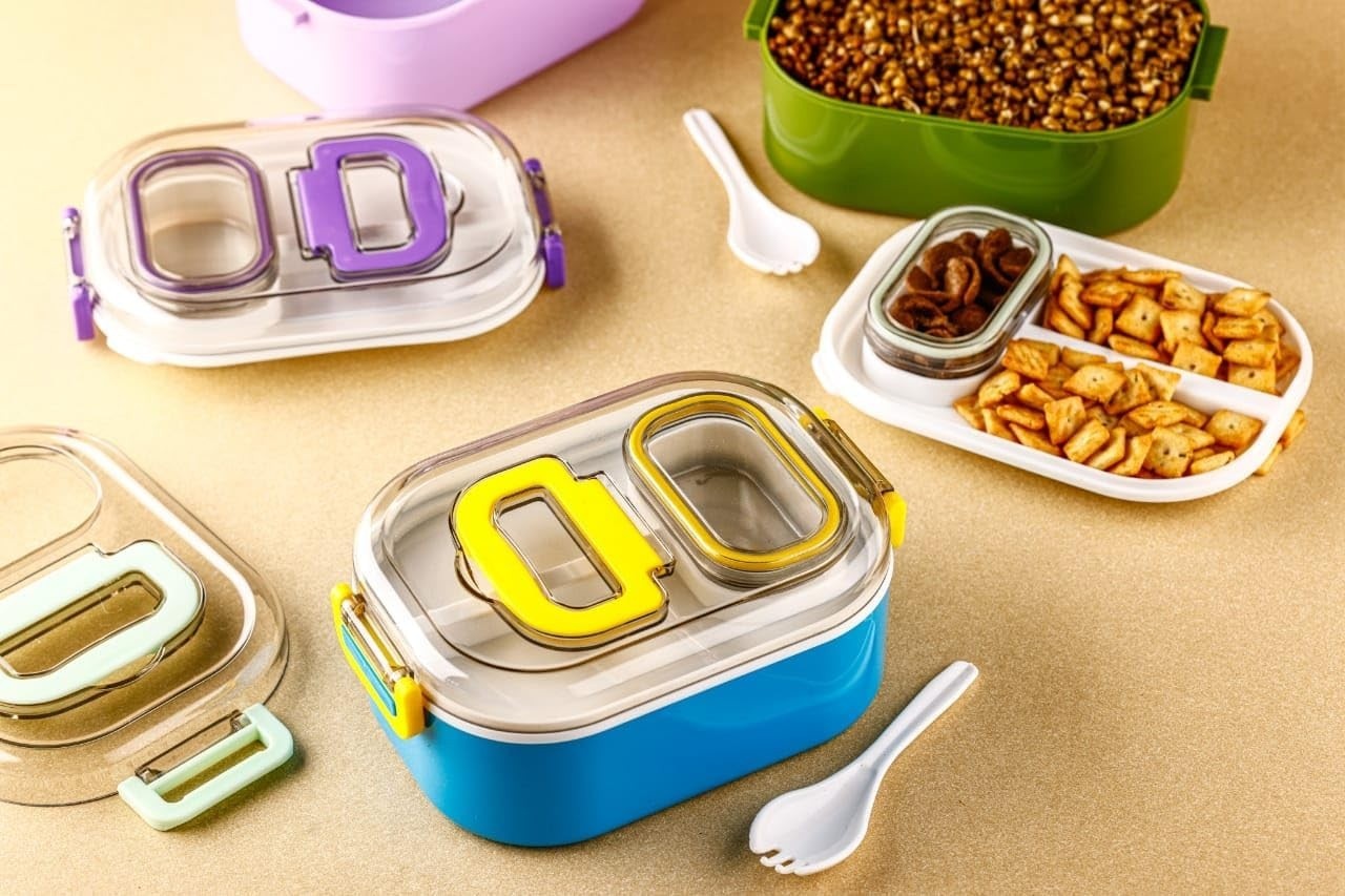 Introducing the Mighty Lunchbox – a perfect blend of style, convenience, and durability for your everyday meals. Designed with vibrant, eye-catching colors and a modern aesthetic, this lunchbox is ideal for all age groups. Each box is equipped with leak-proof, airtight lids to keep your food fresh and mess-free. It also comes with a built-in spoon/fork compartment for hassle-free eating on the go. Made from premium BPA-free plastic, the Mighty Lunchbox is safe, reusable, and easy to clean – making it your ideal companion for office, school, travel, or home use.